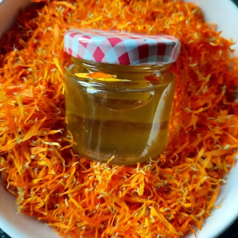 Zelf goudsbloemolie maken : Goudsbloemen , kokosolie, lavendel